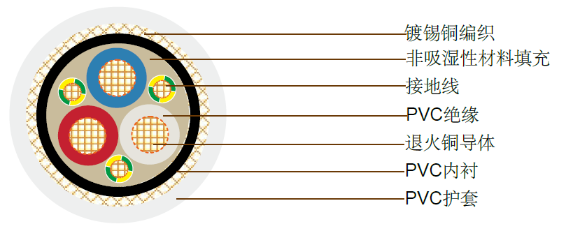 | 护套: | 阻燃聚氯乙烯PVC V75 |