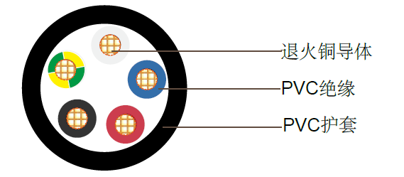 4+E聚氯乙烯绝缘,聚氯乙烯护套圆线, 450/750V