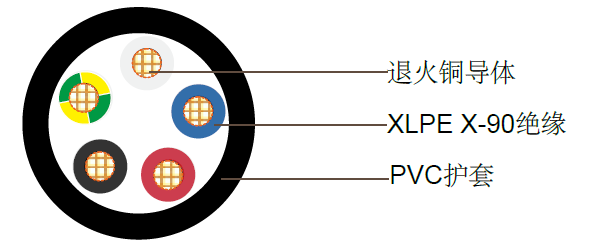 4+E聚乙烯绝缘,聚氯乙烯护套非铠装电缆 0.6/1kV